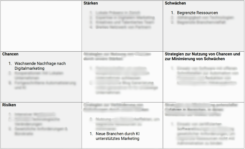 Beispiel: SWOT-Analyse Vorlage für eine Marketingagentur