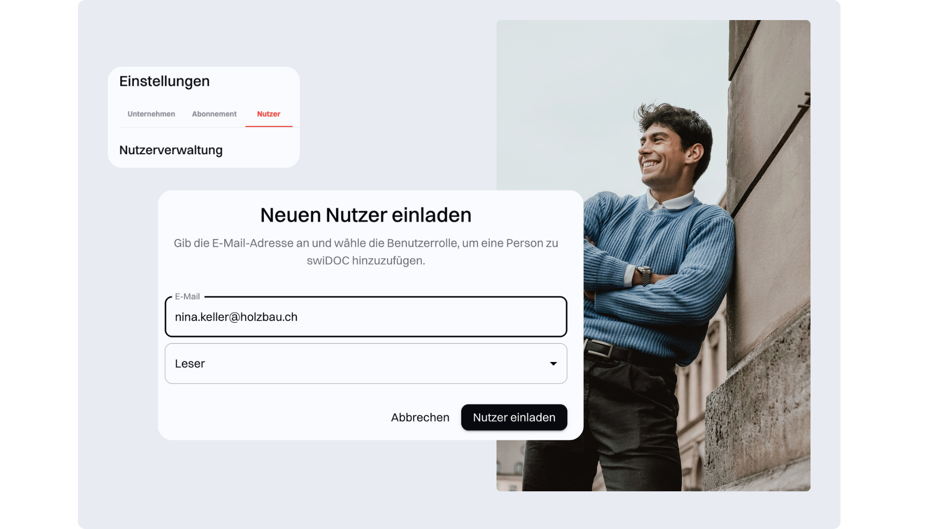 Schon bist du startklar! Füge neue Nutzer einfach per E-Mail hinzu, wenn du im Team arbeitest, oder teile dein Archiv mühelos mit externen Personen.