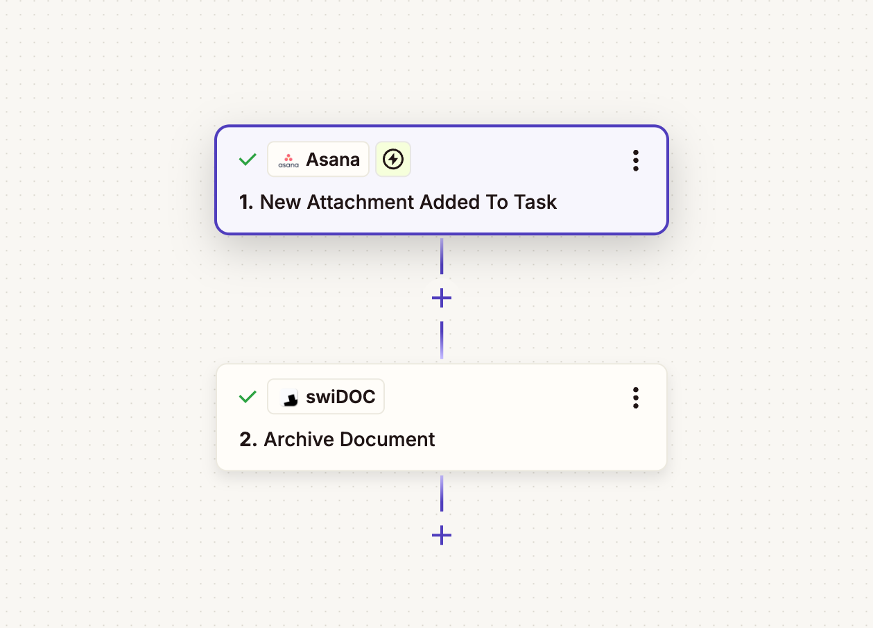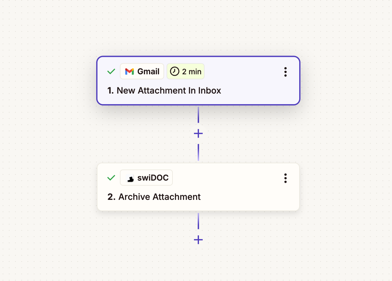Zapier ist eine Online-Plattform, mit dem sich über 6'000 Apps und Dienste verbinden und automatisiert Workflows einrichten lassen. In Kombination mit swiDOC ermöglicht es, Dokumente automatisiert abzulegen, weiterzuverarbeiten oder zu organisieren – beispielsweise aus Buchhaltung, E-Mail, Cloud-Speichern, Projektmanagement und vieles mehr. So entsteht eine nahtlose Verbindung zwischen verschiedenen Programmen, ganz ohne Programmierkenntnisse.